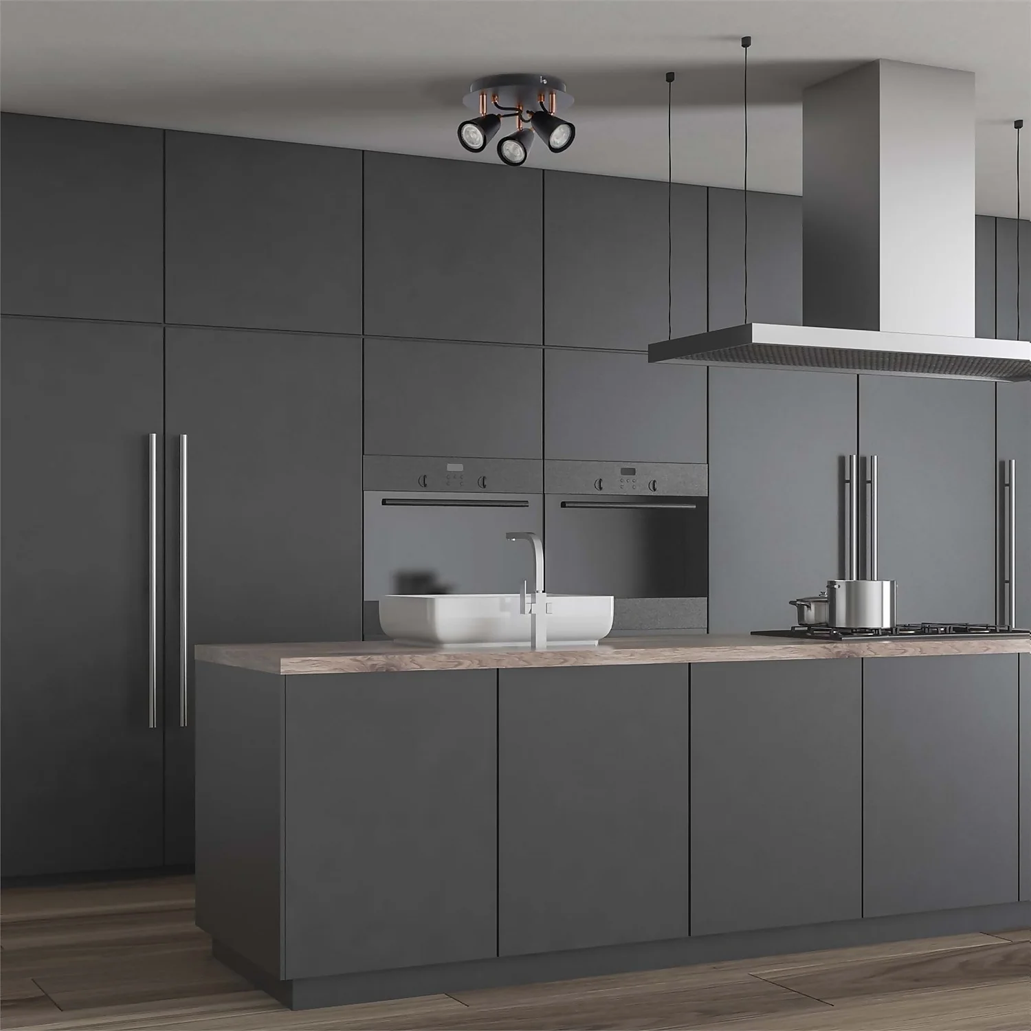 Emma spotlight is hitting all the trends right now. The 3 adjustable matt black lamps with copper detailing on a circular plate make an eye-catching choice of light It means the only thing you need to worry about is which part of your home to shine your new spotlight on.