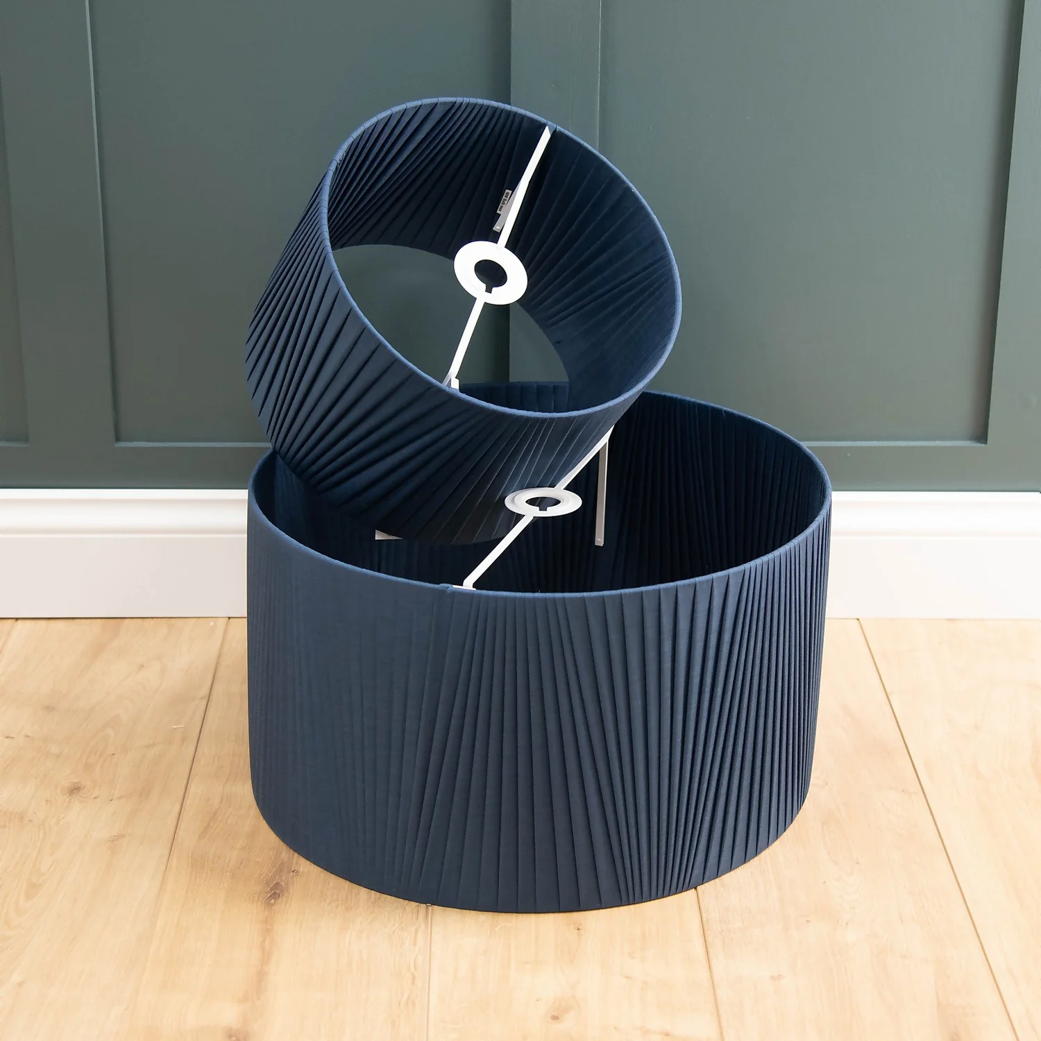 Give you room the WOW factor this statement lamp shade is crafted from faux silk, our Raye drum lampshade range will add a fun accent to your home. Made with a reversible gimbal to give you the choice as to where you can use this lamp shade either as a ceiling light or for a floor lamp. With its modern pleats and soft fabric this lamp shade will give the perfect glow to any room.