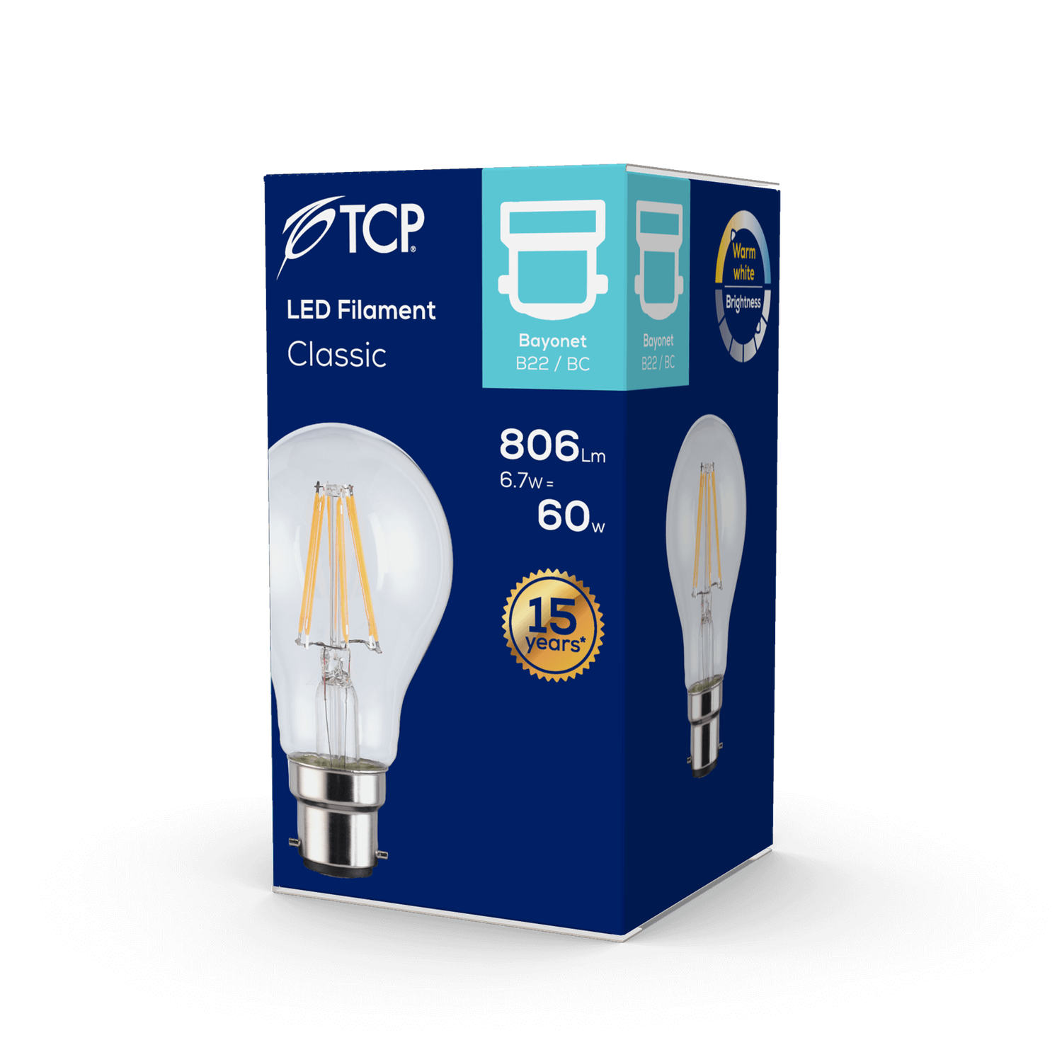 A single LED filament classic bulb with a bayonet cap fitting.